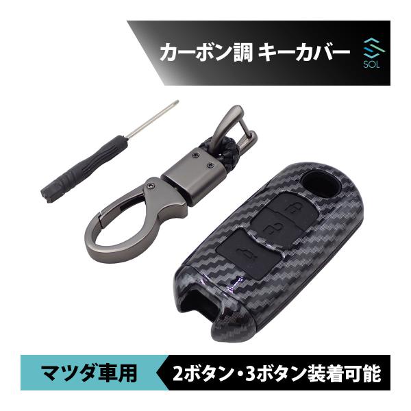 マツダ キーカバー CX-3 CX-5 CX-7 CX-8 MPV キーケース 2ボタン 3ボタン カーボン調 スマートキーケース アクセサリー