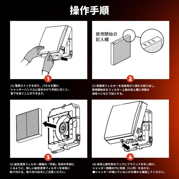 ・更?建?2か月に1回以上。掃除機などで、表面のゴミ・ホコリを吸い取る。水洗いはしないでください。交換目安:1年。使用環境によって交換の時期が異なる。