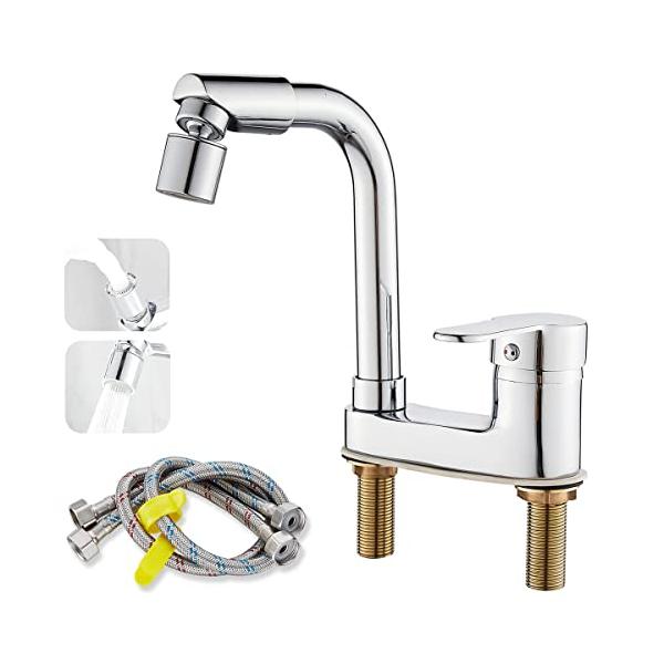 Maynosi 洗面台蛇口 2穴洗面用水栓 洗面水栓 ツーホール式 フル回転ヘッド 2つの水流モード シングルレバー 混合水栓 手洗いボウル用