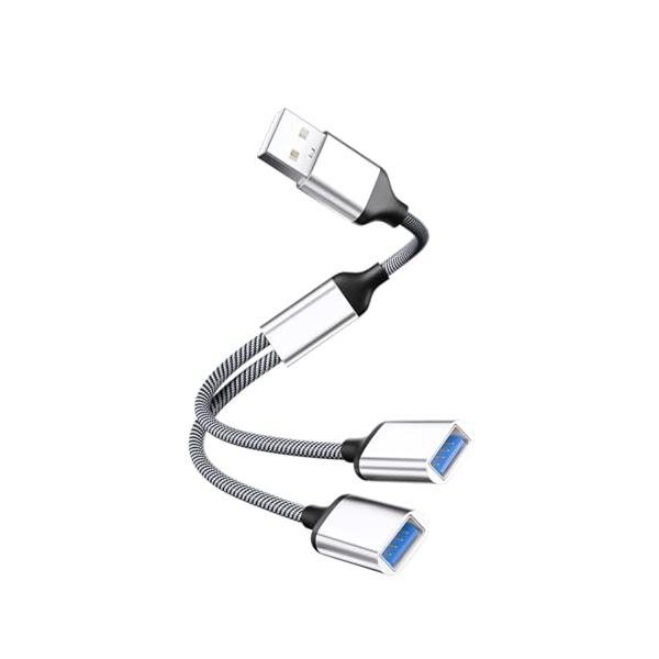 USB 分岐ケーブル 二股 1オス2メス Y字ケーブル ナイロン編み ポート 拡張 延長 分配 充電 データ転送用 スプリッタ Mac/Wind