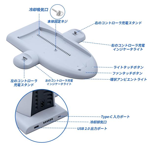 ・PS5 Slim専用設計:多機能RGB充電スタンドは、PS5 Slimコンソールのために特別にデザインされた宇宙船のような美しさを備えています。そのデザインはPS5スリムの洗練された外観を引き立てるだけでなく、高効率の冷却ファンを内蔵しています。冷却ファンは、高速、中速、低速の3段階に調節可能で、激しいゲームプレイ中もゲーム機を冷却します。このステーションは、電源オフ・メモリー機能により、最後に使用した設定をスマートに記憶し、常にシームレスなゲーム体験を提供します。