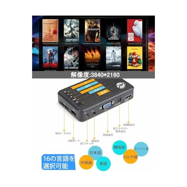 メディアプレーヤー MP4プレーヤー最大解像度3840*2160p 4kマルチメディアプレーヤーHDMI 1080PメディアドプレイヤーUSBメ
