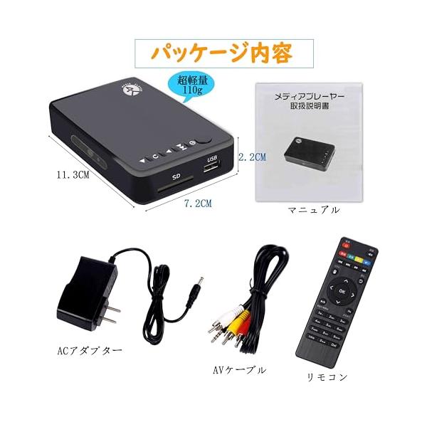 ・USBメモリ/SDカード/外付けHDDに保存してる動画・画像・音楽をテレビやプロジェクターで再生ができるメディアプレーヤーです。再生したいゲータをUSBメモリ又はSDカードに保存し、本製品に接続することでパソコンを使うことなく再生できます。