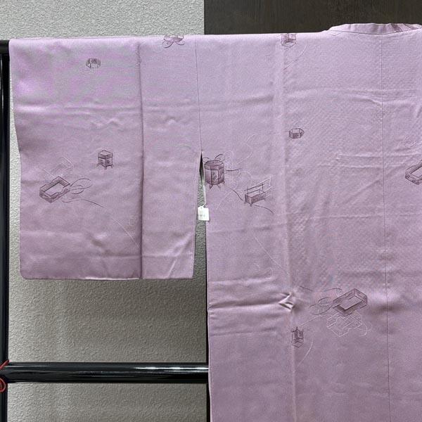 貝桶模様が施された薄紫色の上品な正絹の道行コート。