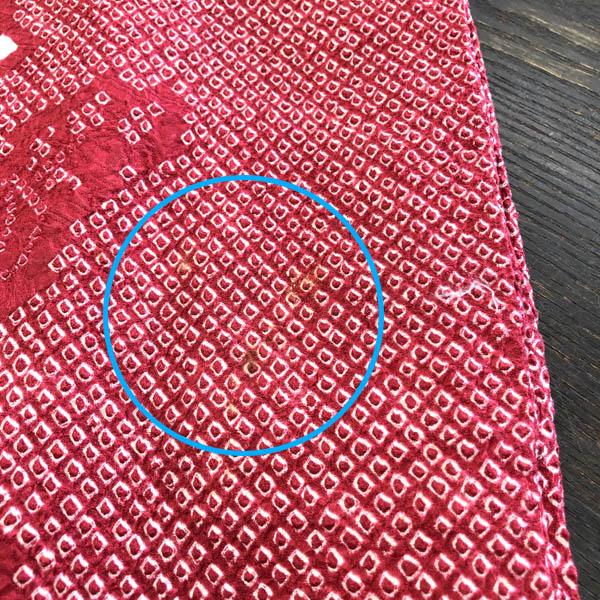 裏地に経年の黄ばみは見られるものの、表地には特に目立つ変色やシミは無く良い状態と言えるでしょう。表地、裏地とも正絹。