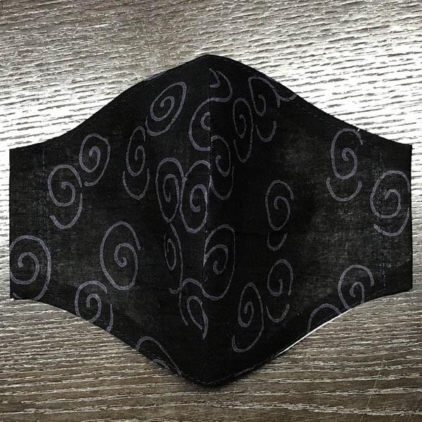 着物屋が作った和柄布マスク「うずまき」 綿麻浴衣地使用 「黒地」 おしゃれ 女性用男性用あり 洗える 日本製