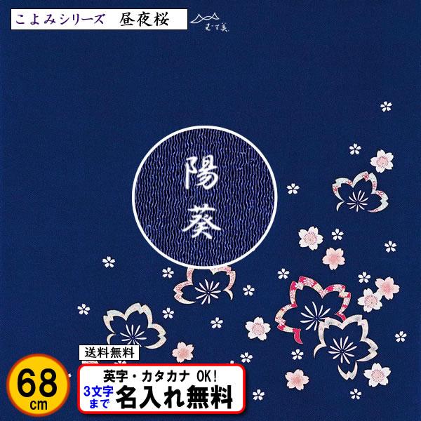 名前入り 風呂敷 68cm ちりめん友禅 昼夜桜 紺色 金文字可 ネーム 結婚式 記念品 プレゼント 初節句 誕生祝い 中元 歳暮 重箱 包み 縮緬 むす美 ふろしき
