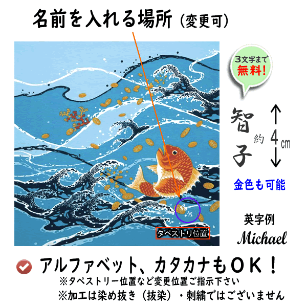 名入れ タペストリー 開運風呂敷 金運アップ 商売繁盛 厄除け お祝い 誕生日 プレゼント 内祝 記念品 新築祝い 鯛小判 鯉の滝登り お弁当包み