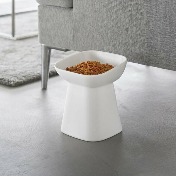 [ 食べやすい高さ陶器ペットフードボウル ヌークス 斜め H17 ]