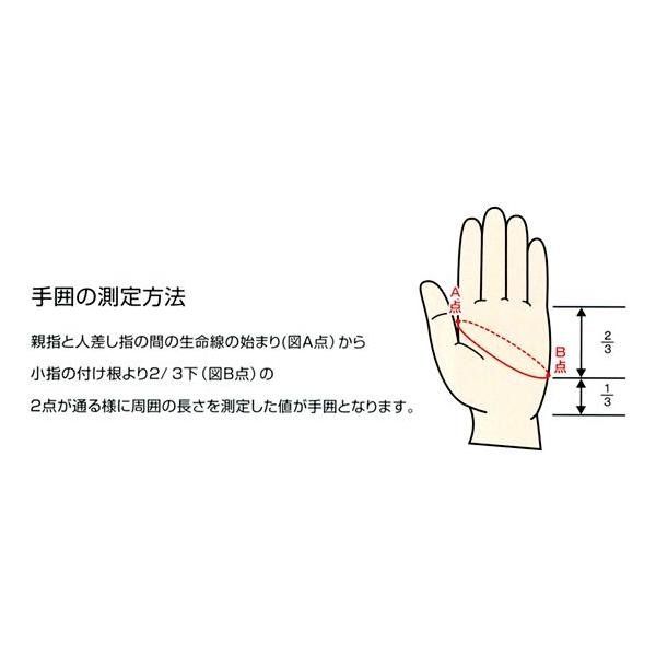 親指と人差し指の間の生命線の始まりから小指の付根より2/3下の2点が通るように周囲の長さを測定した値が手囲となります。