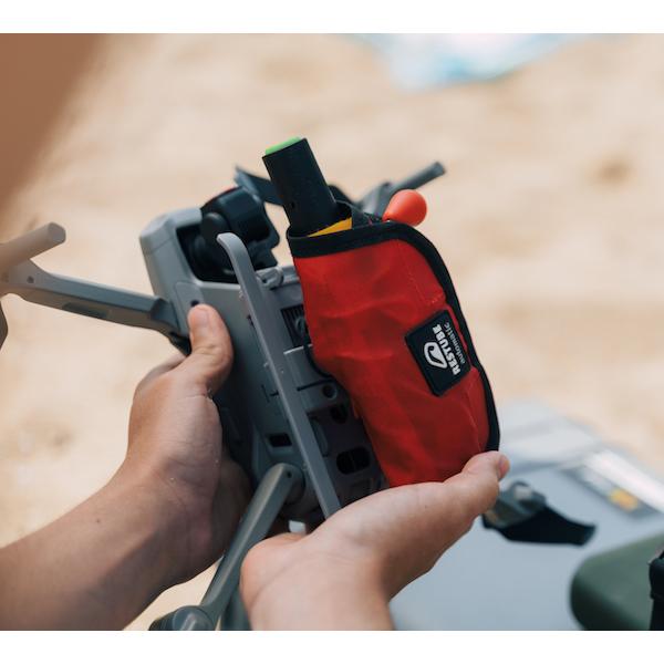 超小型 ・ 軽量のため小型ドローンヘの搭載が容易で、 いち早く、 要救助者のもとへ浮力体を届けます。