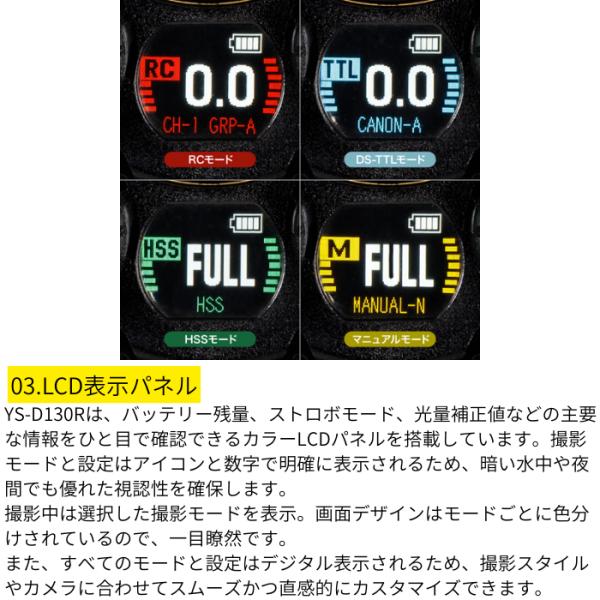 付属品 :ディフューザー、レッドフィルター、ストロボボールベース、シリコングリス、単3バッテリーホルダー、ベースブロック、専用リチウムイオン電池 (SB-L02)、専用デュアルUSBチャージャー (SC-L01D)