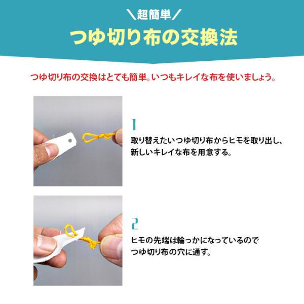 スペア用つゆ切り布(2枚)がセットになっています。