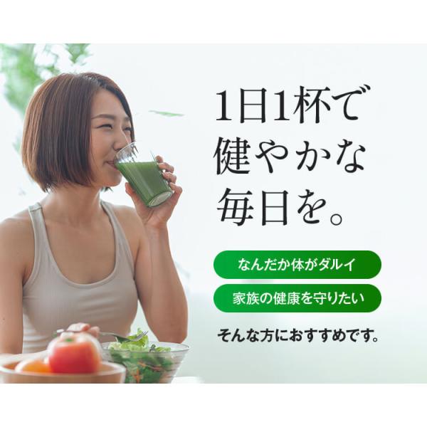 普段の食事だけでは野菜摂取量が全く足りない、野菜をもっと簡単に摂取したい。そんな日々野菜不足を感じている方にオススメ!一度この超本格派青汁をお試しください。9つの野菜の恵みを贅沢に配合しており、中でも近年スーパーフードとして注目されている「ケール」はビタミン・ミネラル食物繊維など現代人に不足しがちな栄養素を豊富に含んでおります。仕事の合間や忙しい朝、夕食前など飲むタイミングはお客様のお好きなタイミングでお召し上がりください。まずは3ヶ月程続けていただくことを推奨しております。