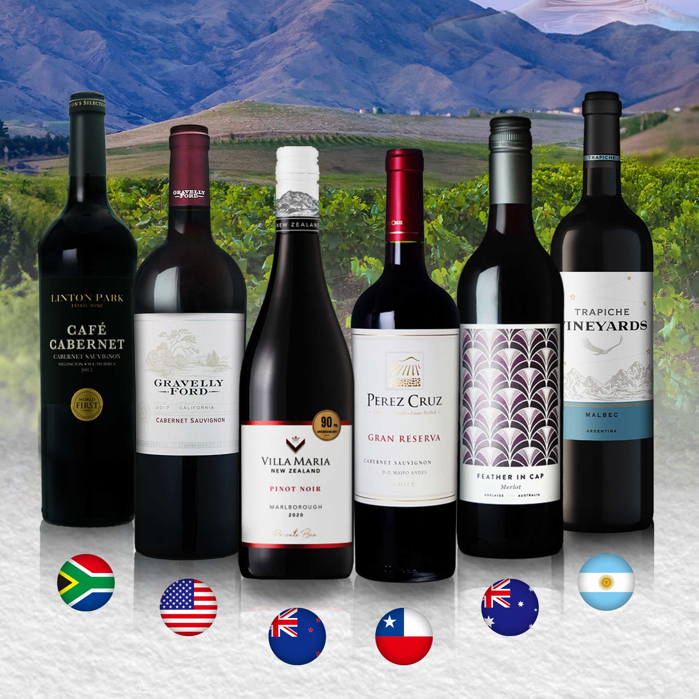 6ヵ国ニューワールド赤ワイン6本セット!金賞ワイン入り 飲み比べセット フルボディ ミディアムボディ 送料無料 赤ワインセット パーティー 贈り物 ヴィンテージ