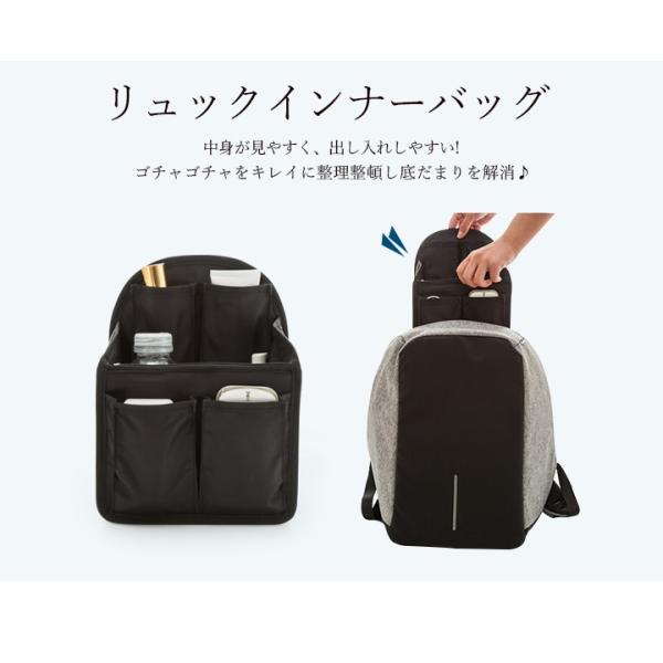 バッグインバッグ リュック 縦型 軽量 収納 中身 インナーバッグ 小物整理 リュックインポケット デイバック バックパック 日々の定番 卒園