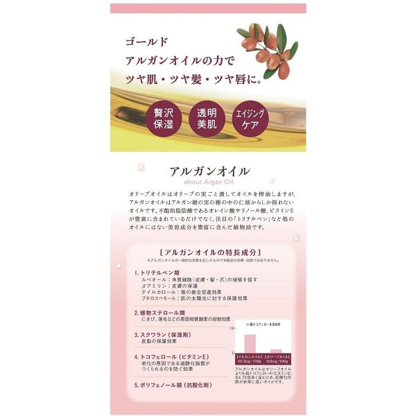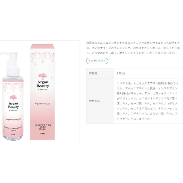 保湿成分であるコメヌカ油とピュアアルガンオイル(アルガニアスピノサ核油/保湿成分)10%配合の洗い流すタイプのクレンジング。