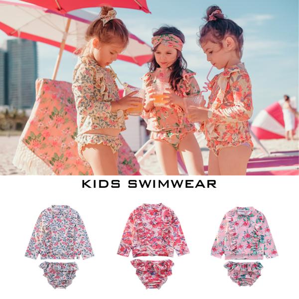 【送料無料】キッズ 水着 セパレート 子供用水着 女の子 キッズ ベビー 花柄 セット 女の子水着 紫外線防止 かわいい フラワー柄 100cm 110cm 120cm 130cm