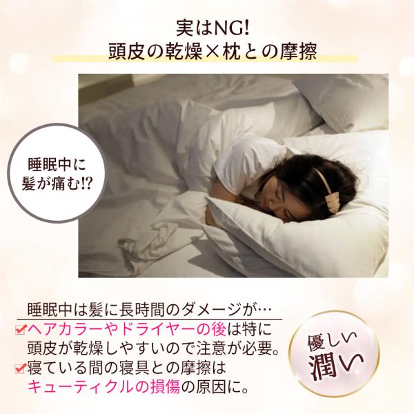 被って寝れば朝起きても髪がパサつかずサラサラ。