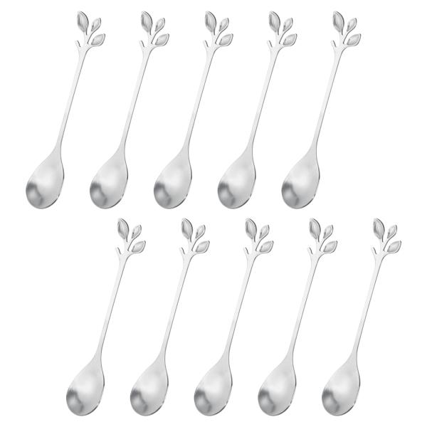 uxcell ステンレススチール製のリーフコーヒースプーン 123mmx24mm 小さな食器デザートスプーン アイスティー コーヒー シルバー 10個