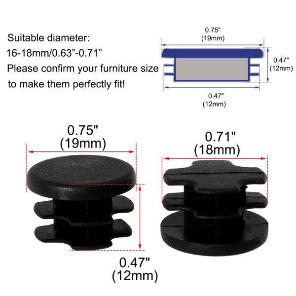 uxcell チューブインサートパイプエンドカバーキャップ?16-18 mm内径?19 mm外径?プラスチック?家具椅子テーブルレッグキャップ用 8個