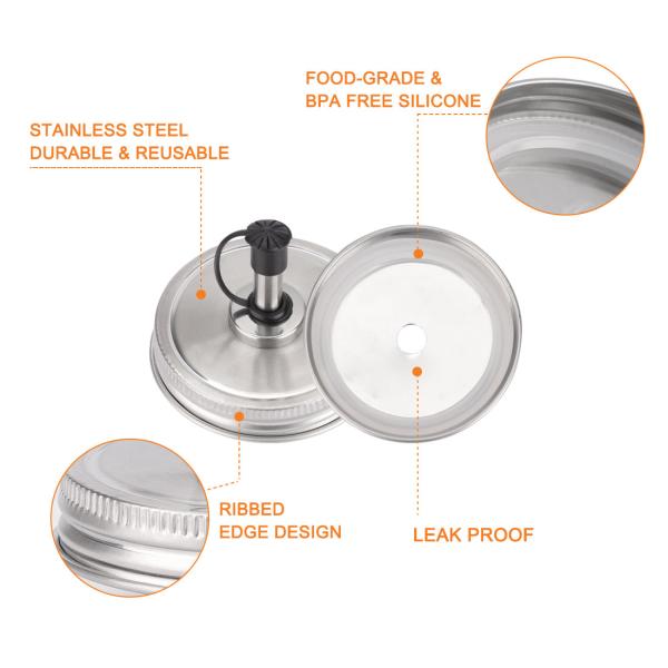 汎用:これらのメイソンジャーの注ぎ口蓋は、オイル注入、オリーブオイル、シロップ、酢、屋内調理や屋外バーベキューツールに最適です。