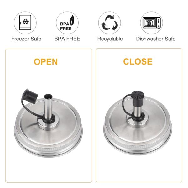 食器洗い機と冷凍庫対応:プラスチックや他の金属製の蓋とは異なり、当社のステンレススチール製メイソンジャーの蓋は錆びにくく耐久性があり、数回再利用でき、食洗機対応で、食器洗い機や冷凍庫での極端な温度にも耐えられます。