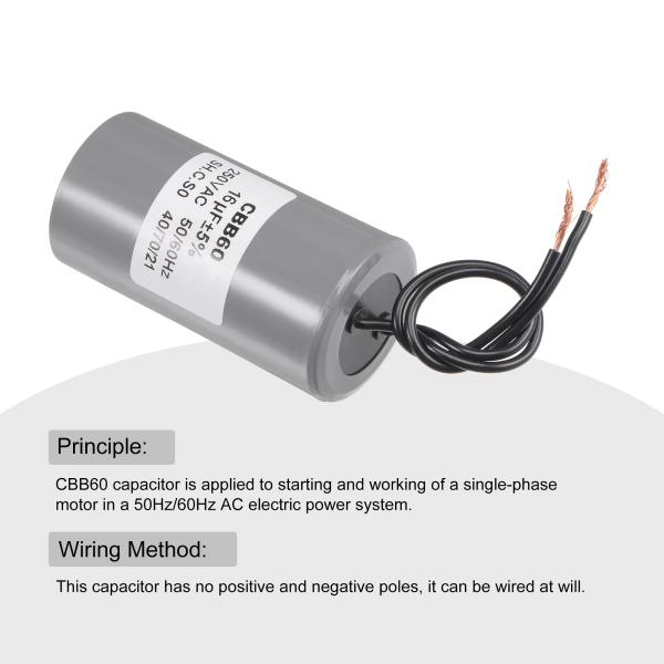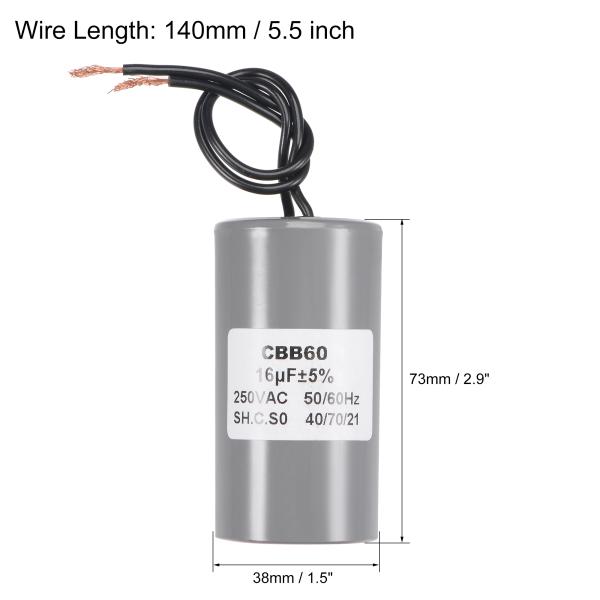 uxcell CBB60ランコンデンサ 16uF 250V AC 2ワイヤー 50/60Hz 75x38 mm エアコン プレッサー モーター用