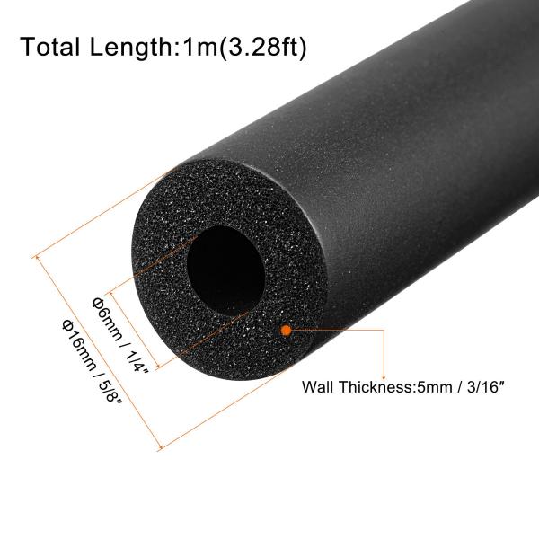 uxcell エアコン フォームチューブ 6mm内径 16mm外径 1 M長さ チューブカバー ハンドルグリップサポートパイプ断熱材用 ブラック 2個