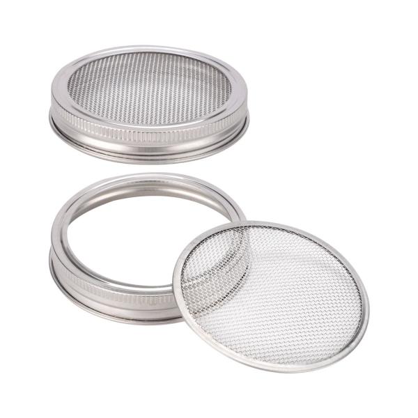 uxcell 芽のふた ステンレス鋼 広口メイソン缶詰用 ジャーカップストレークリーン 缶詰ジャーと種子発芽用 2個