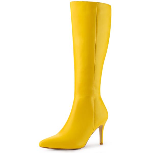 Allegra K ニーハイブーツ ポインテッドトゥ サイドジッパー ピンヒール スティレットヒール レディース イエロー 25.0cm
