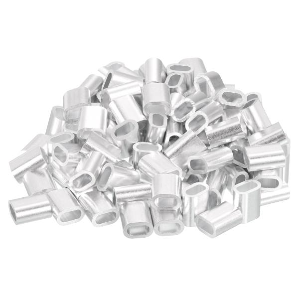 uxcell 4mmワイヤーロープ用アルミ製クリンピングループスリーブ100個セット ケーブルラインエンド用楕円形アルミ製ワイヤーロープスリーブ