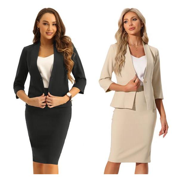 Allegra K ビジネス スーツ スカート セット オフィス 通勤 ノーカラー ブレザー ペンシルスカート 2ピース レディース