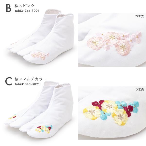足袋 刺繍 レディース 白 おしゃれ コハゼ 桜 丸菊 着物 和装 訪問着 振袖 袴 成人式 卒業式 女性 フォーマル 日本製