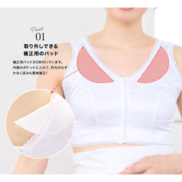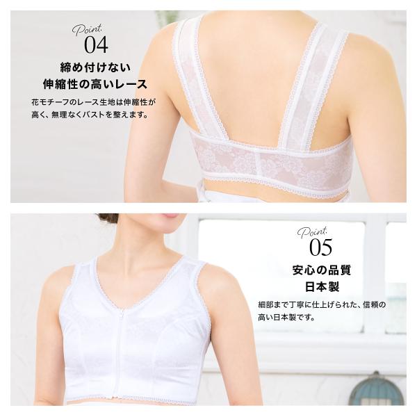 和装ブラジャー 補正下着 和装ブラ 女性 肌着 白 花 レース 抗菌・防臭加工 前ファスナー 通年 和装下着 補正 着付け小物 和装小物 日本製 M L LL