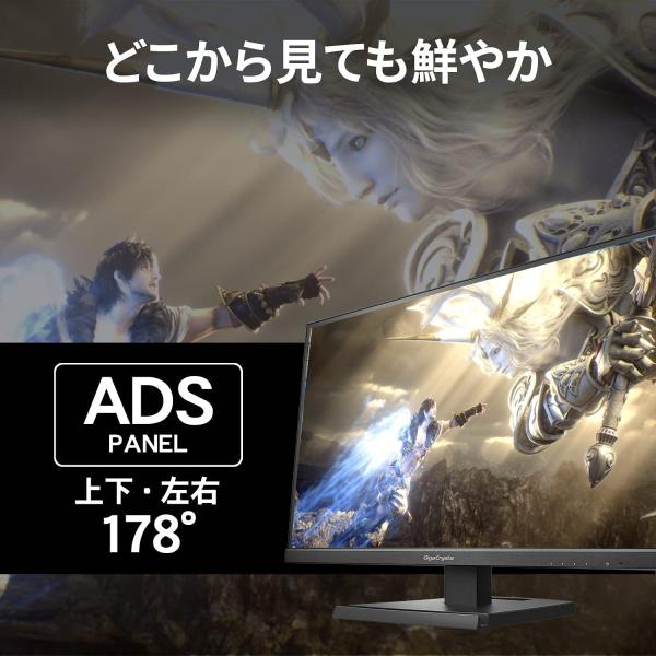 ■4K UHD(3840×2160ピクセル)解像度に対応した、27型ゲーミングモニター「GigaCrysta」です。 ■4K解像度に対応しているので、従来のフルHD解像度に比べ、4倍の情報量を同時に表示することができます。 ■暗いシーンもより鮮明に表示する「Night Clear Vision」や映像にメリハリと鮮やかさが加わる「エンハンストカラー」などゲームに最適な機能を搭載しました。 ■広視野角ADSパネルを採用し、どの角度から見ても色鮮やかなキレイな映像を楽しめます。