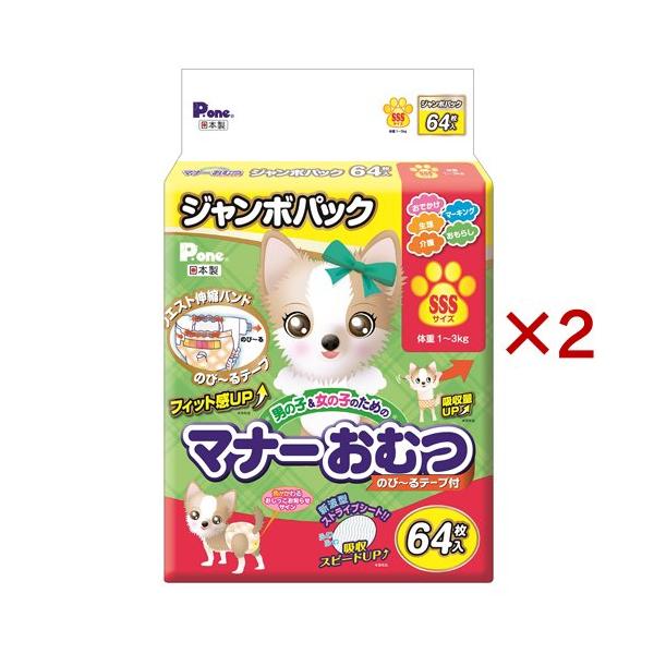 P・ワン 男の子&女の子のためのマナーおむつ のび〜るテープ付き ジャンボパック SSS ( 64枚入×2セット )/ P・ワン(P・one)