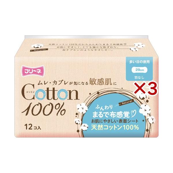 フリーネ コットン100%生理用ナプキン 多い日の夜用 羽なし 29cm ( 12個入×3セット )/ フリーネ ( 生理用品 )