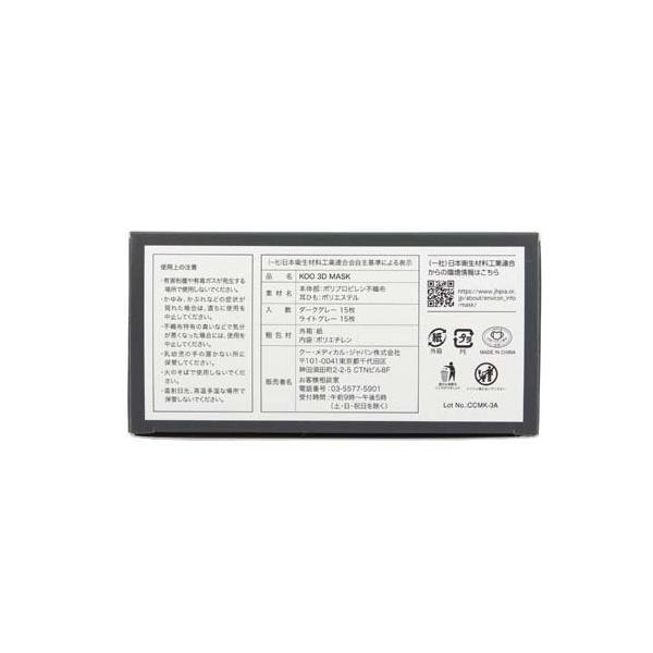 KOO 3D MASK ダークグレー/ライトグレー ゆったりサイズ/マスク/【発売元、製造元、輸入元又は販売元】クー・メディカル・ジャパン/・単品JAN:4560217443244/【KOO 3D MASK ダークグレー/ライトグレー ゆったりサイズの商品詳細】●ライトグレー*ブラック&ダークグレー*ブラックの2色アソート30枚入り。●男性にぴったり、女性にゆったり着用可能。ワンサイズ上のサイズ。●オフィスなどフォーマルな場面でも着用可能なカラー採用。●ライトグレーベースとダークグレーベースで場面や場所に合せて装いをチェンジ。●不織布特有の毛羽立ちをおさえ、長時間着用でも快適な使用感。●内側つるつる、なめらかな肌ざわりで心地よく着用。●3D立体タイプで口元空間が生まれ、呼吸らくらく。●耳ひもゆったり、耳への負担を抑制。●PM2.5対応フィルター採用。/cate20278