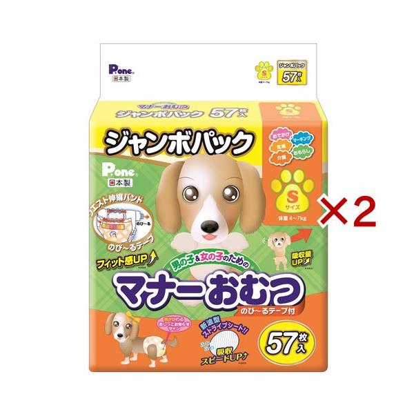 P・ワン 男の子&女の子のためのマナーおむつ のび〜るテープ付き ジャンボパック S ( 57枚入×2セット )/ P・ワン(P・one)