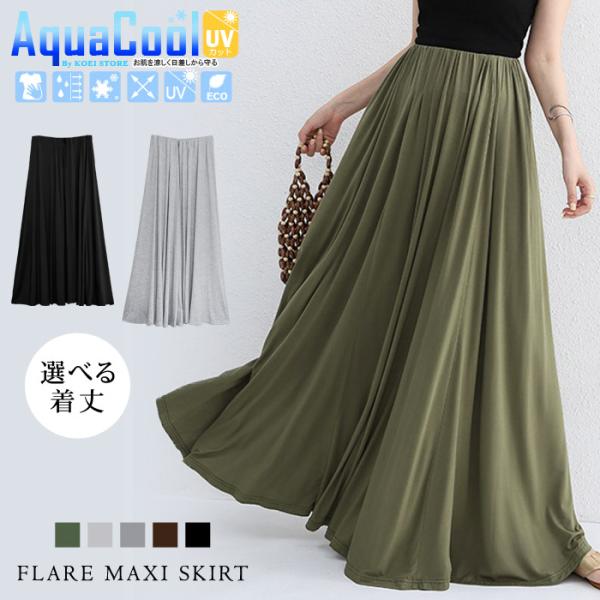 ロングスカート レディース 秋 冬 秋冬 黒 スカート UVカット Aライン フレア ロンスカ マキシ ブラック カーキ ブラウン グレー ウエストゴム 送料無料