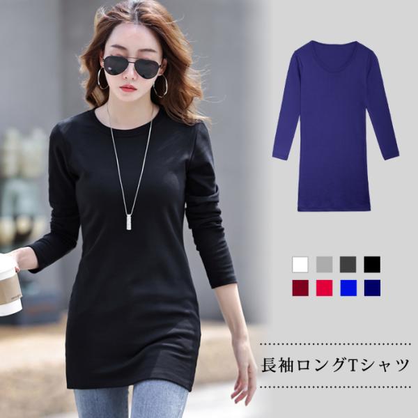 トップス レディース tシャツ 長袖 カットソー 白 黒 ロングTシャツ オフィス チュニック 春 夏 春夏 無地 ミニワンピ 大人 30代 40代 OL ママ 母