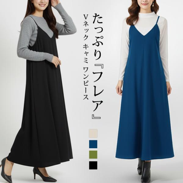 ジャンパースカート ワンピース レディース 春 夏 春夏 黒 無地 キャミソールワンピ マキシワンピース ロング きれいめ 体型カバー サロペット 20代 30代 40代