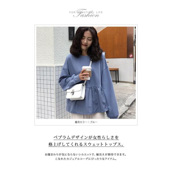スウェット レディース 秋 冬 秋冬 白 黒 トレーナー カットソー トップス 長袖 チュニック ペプラム ホワイト ブラック キャメル ブルー 20代 30代 送料無料