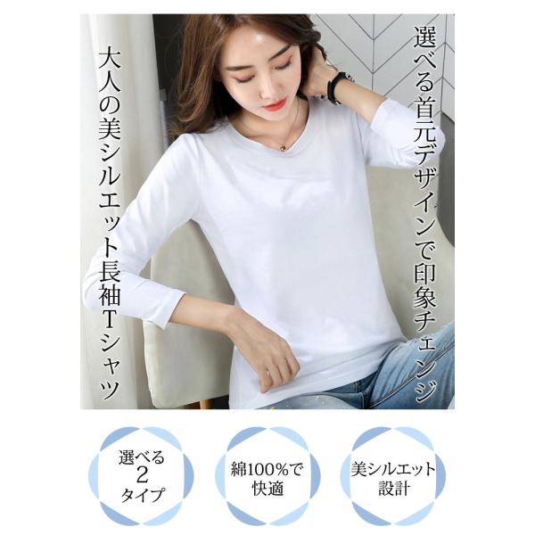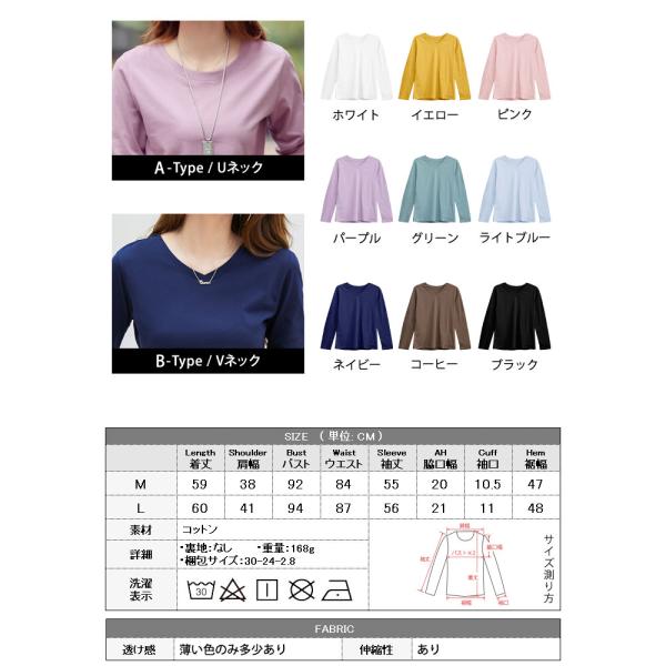 カットソー レディース Tシャツ 春 夏 春夏 黒 白 長袖 Uネック Vネック 綿 コットン 無地 大人 トップス 通勤 通学 カジュアル M L OL ママ 母 20代 30代 40代