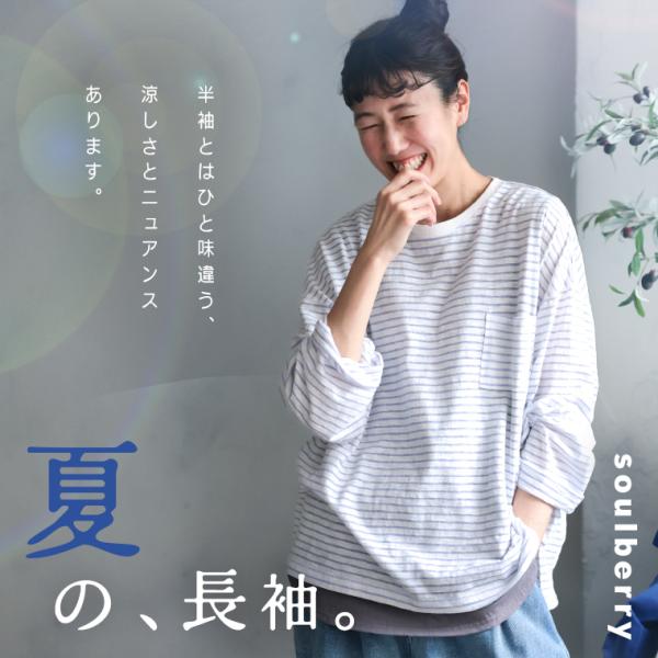 【ついに再入荷!】夏の、長袖ボーダーカットソー レディース ロンT Tシャツ クルーネック シアー ゆったり トップス