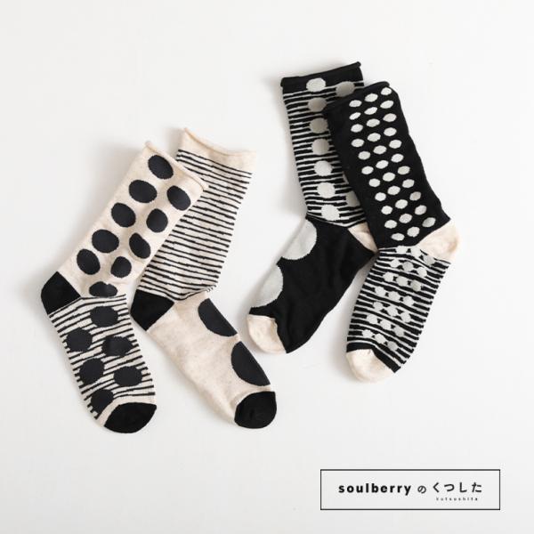 【ついに再入荷!】どこから見ても素敵なアシンメトリー靴下 レディース ソックス くつ下 くつした ドット柄 ボーダー //返品 交換不可【ネコポス対応】