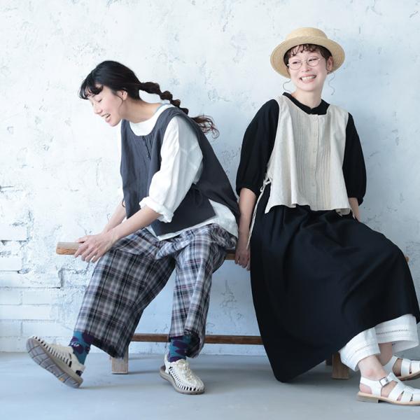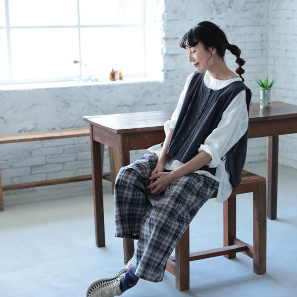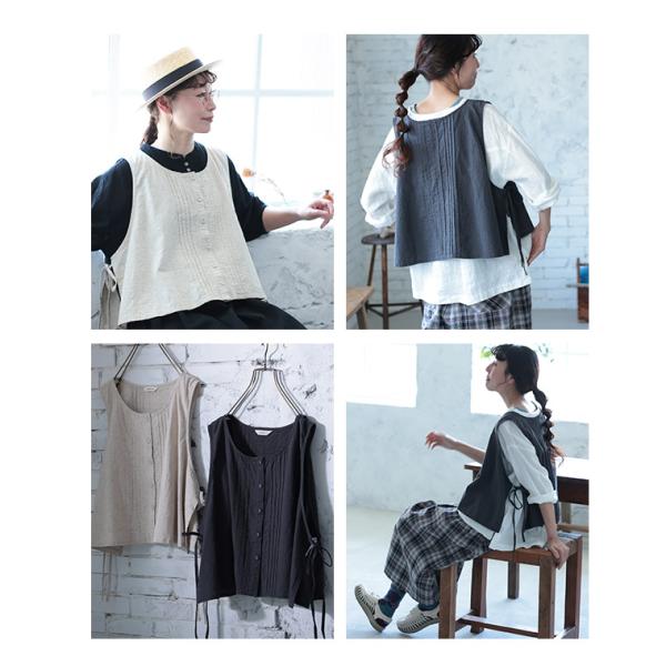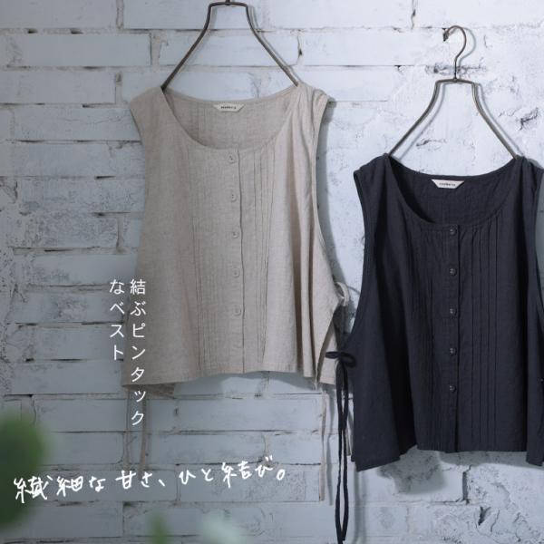 はちみつ堂 結ぶピンタックなベスト レディース ノースリーブ クルーネック ショート丈 麻混 リネン混 トップス 母の日 プレゼント ギフト 贈り物