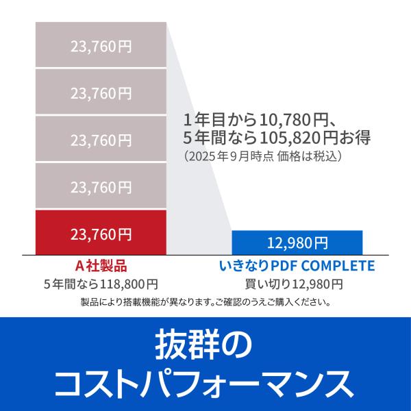 「いきなりPDF」は、高機能で低価格なPDFソフトです。発売から20年にわたり多くの支持を受けています。 本製品は編集も署名もできる上位版です。