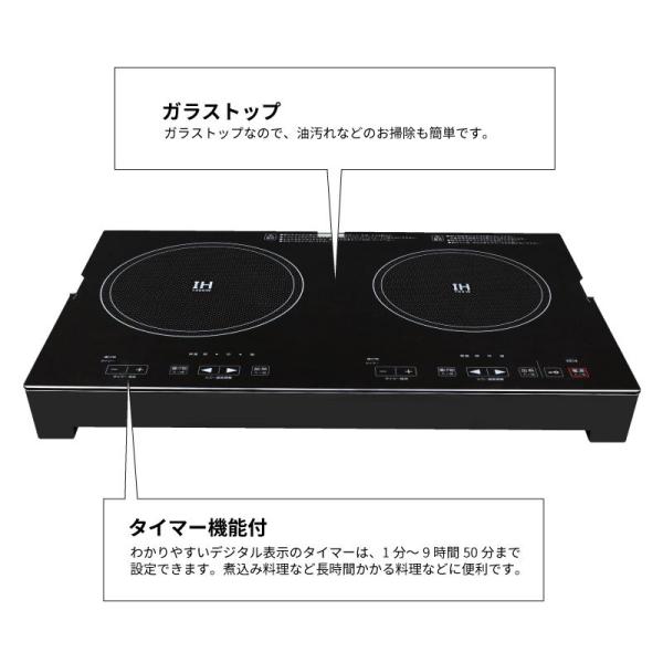 IH調理器 2口 卓上 プレート付き簡単設置 1400w 安全機能 自動OFF 鍋判別 高火力 静音 電気 52cm コスパ